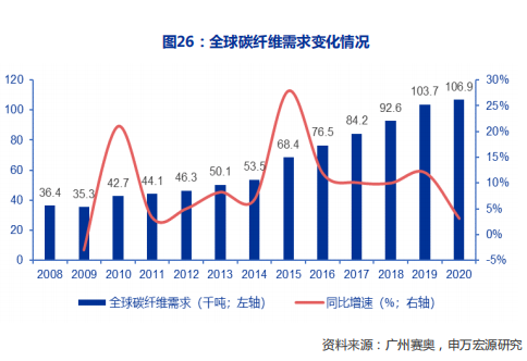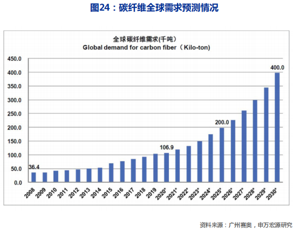 据《2020全球碳纤维复合材料市场报告》,2025年我国碳纤维需求可达15万吨,2030年30万吨可期。